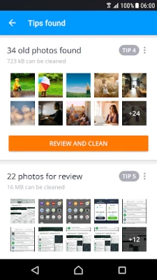 AVG Cleaner Lite runs automatic cleaning check-ups and lets you know when it's ready to go. This feature runs regular cleaning check-ups of your history, files and photos and lets you know what else you can safely remove. Just set it up to run at a frequency you prefer, depending on your usage level and available space.