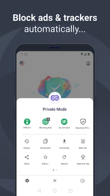 Most other “private browsers” don’t actually make you invisible. AVG Browser is a next-level secure browser with powerful tools that actually keep you private. Features like built-in VPN, automatic ad blocker, total data encryption, unique PIN lock, and more.