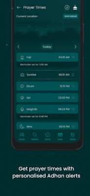 -Set up custom reminders before or after Salah time, including for Suhoor and Iftar.