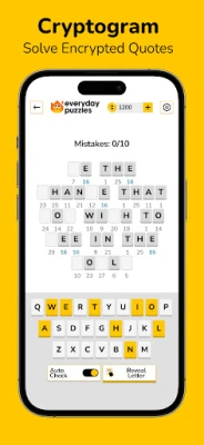 Decode famous quotes from historical figures and celebrities. Cryptogram: Word Brain Puzzle player’s choice and inspired by classic pen-and-paper cryptograms.