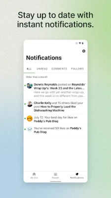 Get notifications about comments, likes, and new followers so you can see people reacting to your website as it happens.