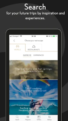 • Search for your next stay by destination, inspiration or via our powerful search engine.