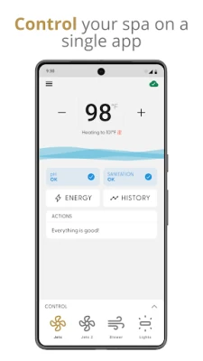Note: To use the app properly, your spa must be connected to Wi-Fi. The water monitoring feature requires additional compatible hardware.