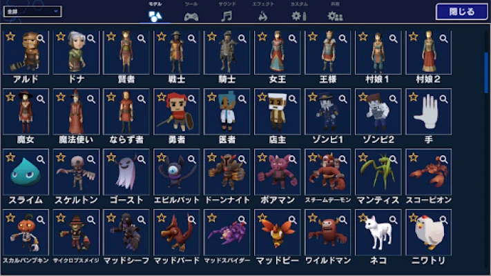 アプリには豊富な素材が用意されています。
